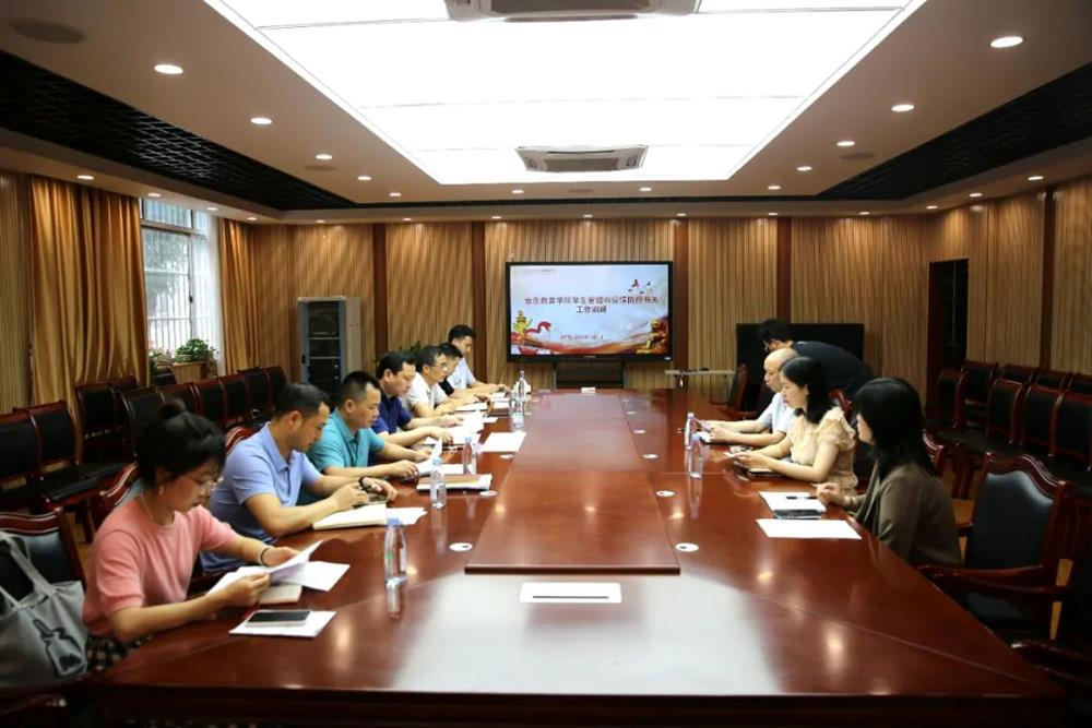 6月1日下午,公司党委常委、副董事长谢斌带领有关职能部门领导和工作人员到太阳成集团tyc9728南湖校区会议室召开员工管理和疫情防控座谈会。太阳成集团tyc9728李志雄书记、黄广凤副书记及全体辅导员参加会议。
